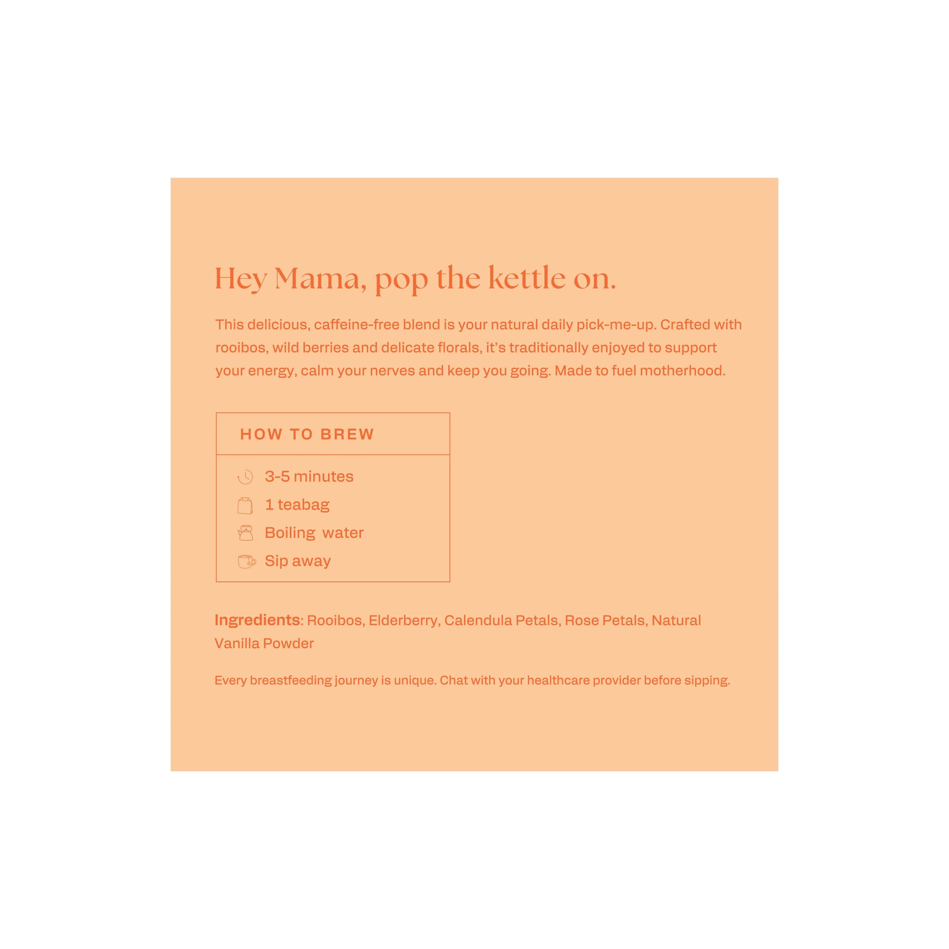 Our all-natural, caffeine-free Pick-Me-Up Mama Tea is a vibrant, feel-good blend created by a naturopath and midwife to support natural energy and nervous system health for tired mums.