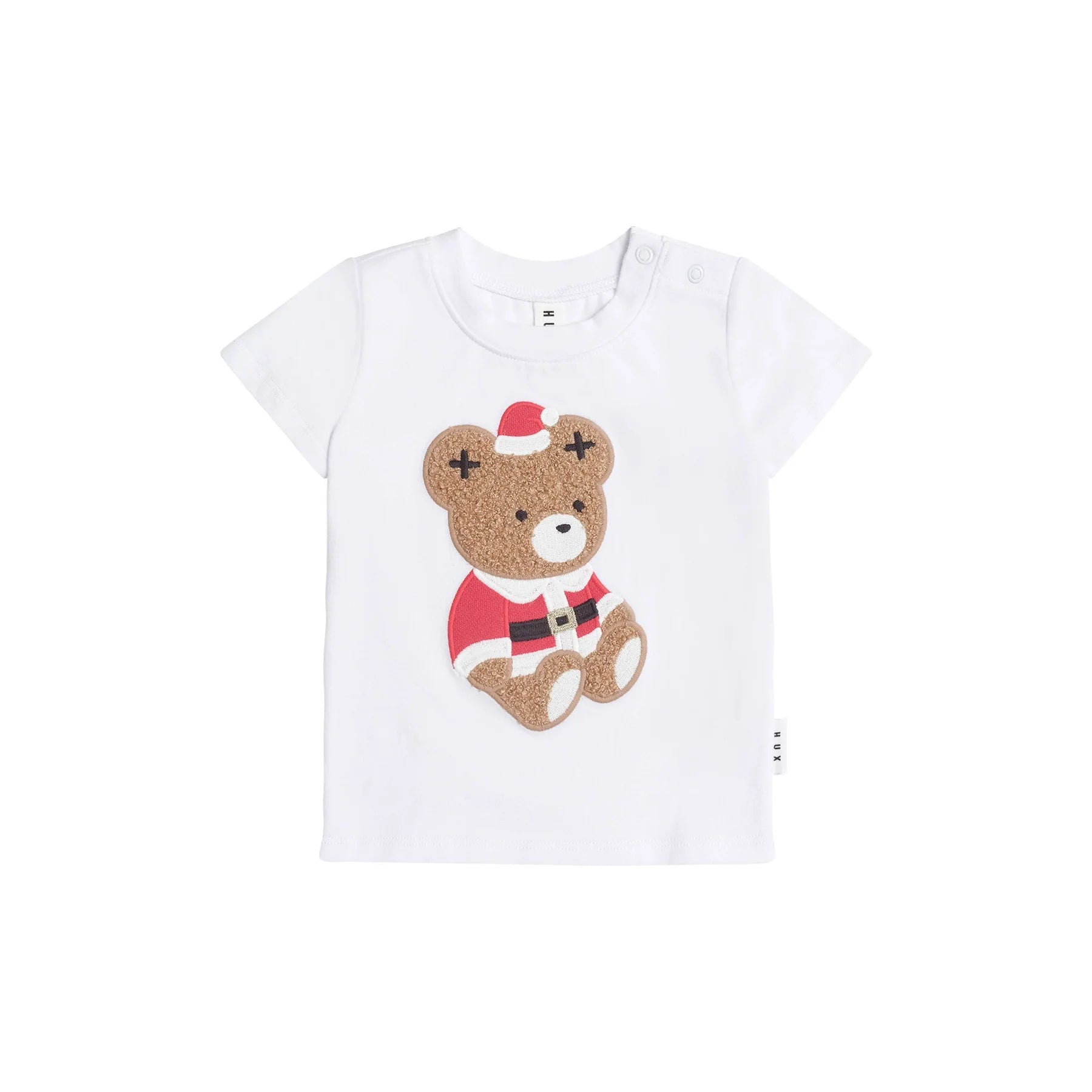 Ho ho ho it's Father Huxmas! Made from cloud-like organic cotton, this festive tee features a tummy-sized Father Huxmas bear embroidery in the softest furry fabric. Baby sizes include stainless steel shoulder snaps for even easier dressing.