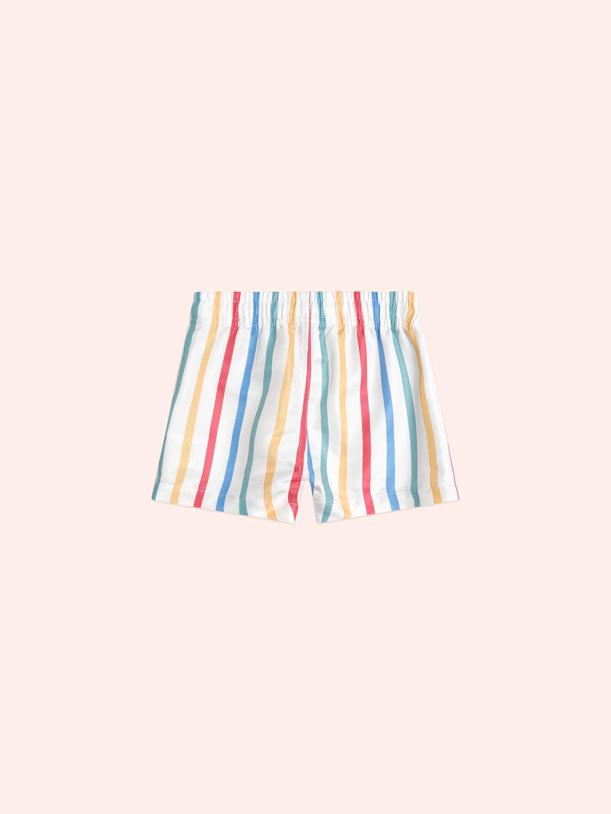 From the pool to the beach to the backyard. These striped swim shorties are your summer bestie, rated UPF 50+ for the highest achievable sun protection. Consciously crafted with recycled polyester, they feature a soft, stretchy waistband, embroidered Huxbear and adjustable drawstring.