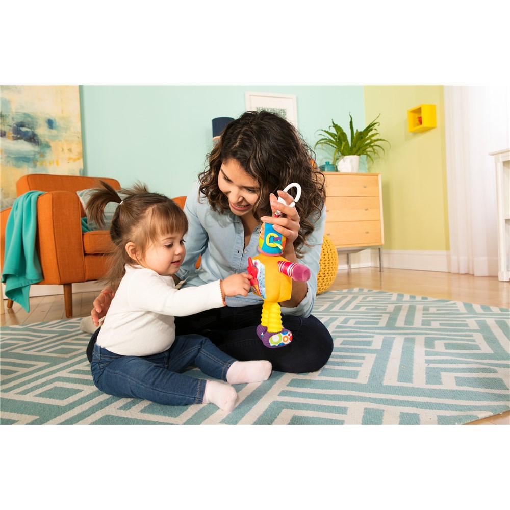 Mitchell Moonwalker is out of this world with his two sides of play. Mitchell's ratcheting head allows you to mix and match his body! He also features a put-in and take-out chewy star, busy beads, crinkle feet, and satin ribbons for baby to explore. The Lamaze clip lets you hook Mitchell to strollers, carriers and nappy bags to take him along for on-the-go fun.