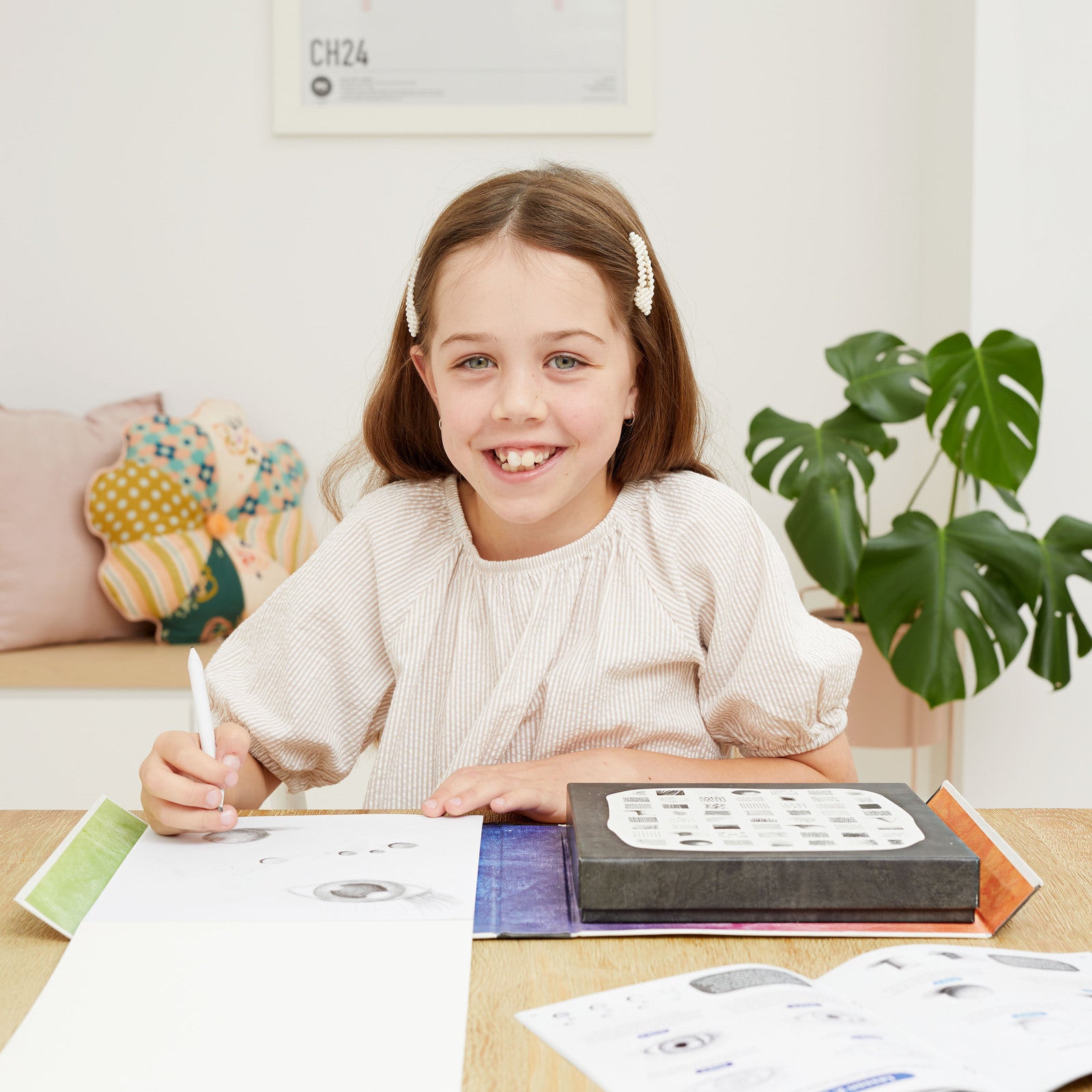 Unleash your inner Frida Kahlo with the Amazing Artist Kit! This all-in-one kit includes everything needed for kids to explore and create their own masterpieces. The 32 page guided instruction book helps teach all kinds of techniques, from working with a variety of materials including pastels, charcoal, fineliner and more. Kids learn to draw 3D, portraits, using perspective, shading, grids and more. With plenty of materials to explore, kids will be inspired to express themselves through art.