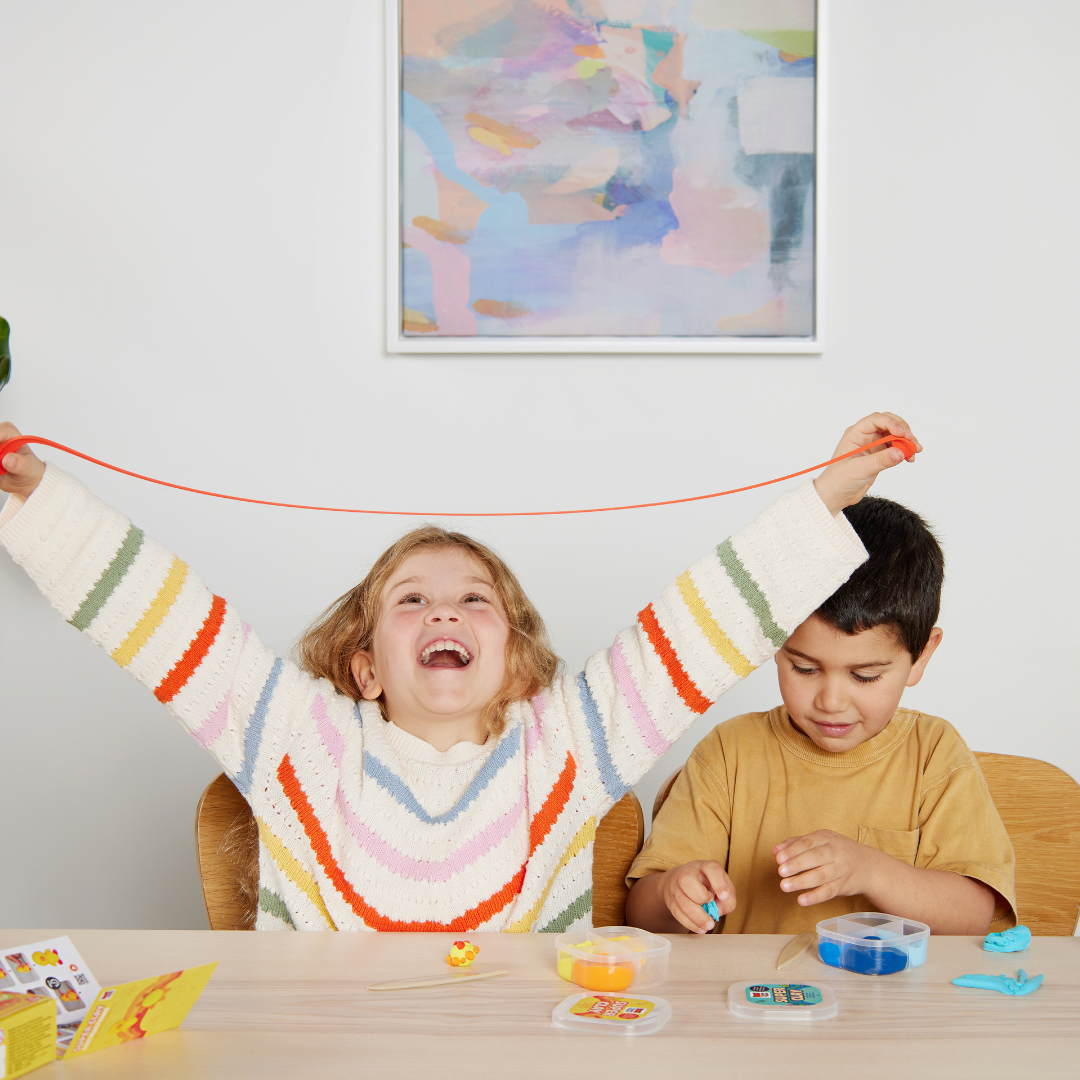 Little hands can bring big ideas to life with this soft, lightweight, air-drying clay. Super Clay – Sunset invites kids to roll, knead and sculpt vibrant colours to create two fun characters — a flower and mushroom — using step-by-step visual instructions, or to shape whatever their imagination comes up with. No oven needed — just air-dry for play or display.