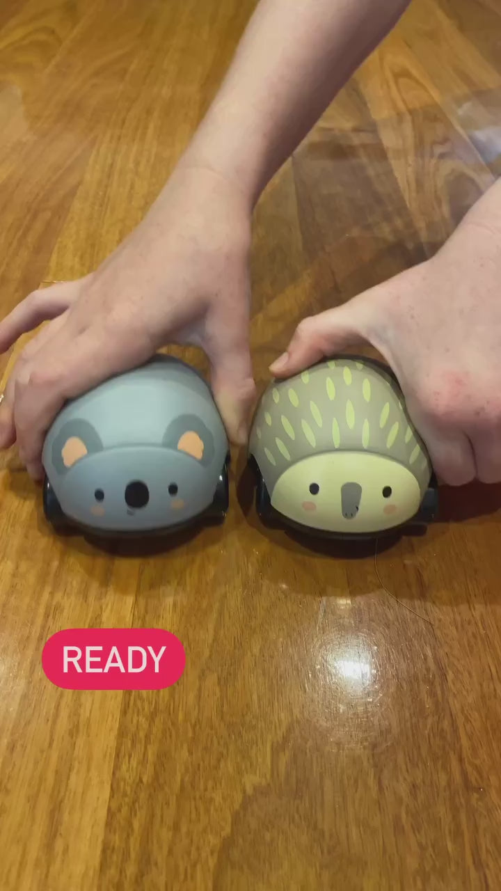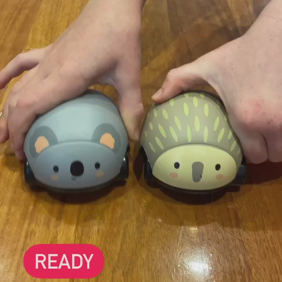 Aussie Animals on wheels! With no batteries required, little ones simply push and pull the animals, release and then watch them zoom across the floor.