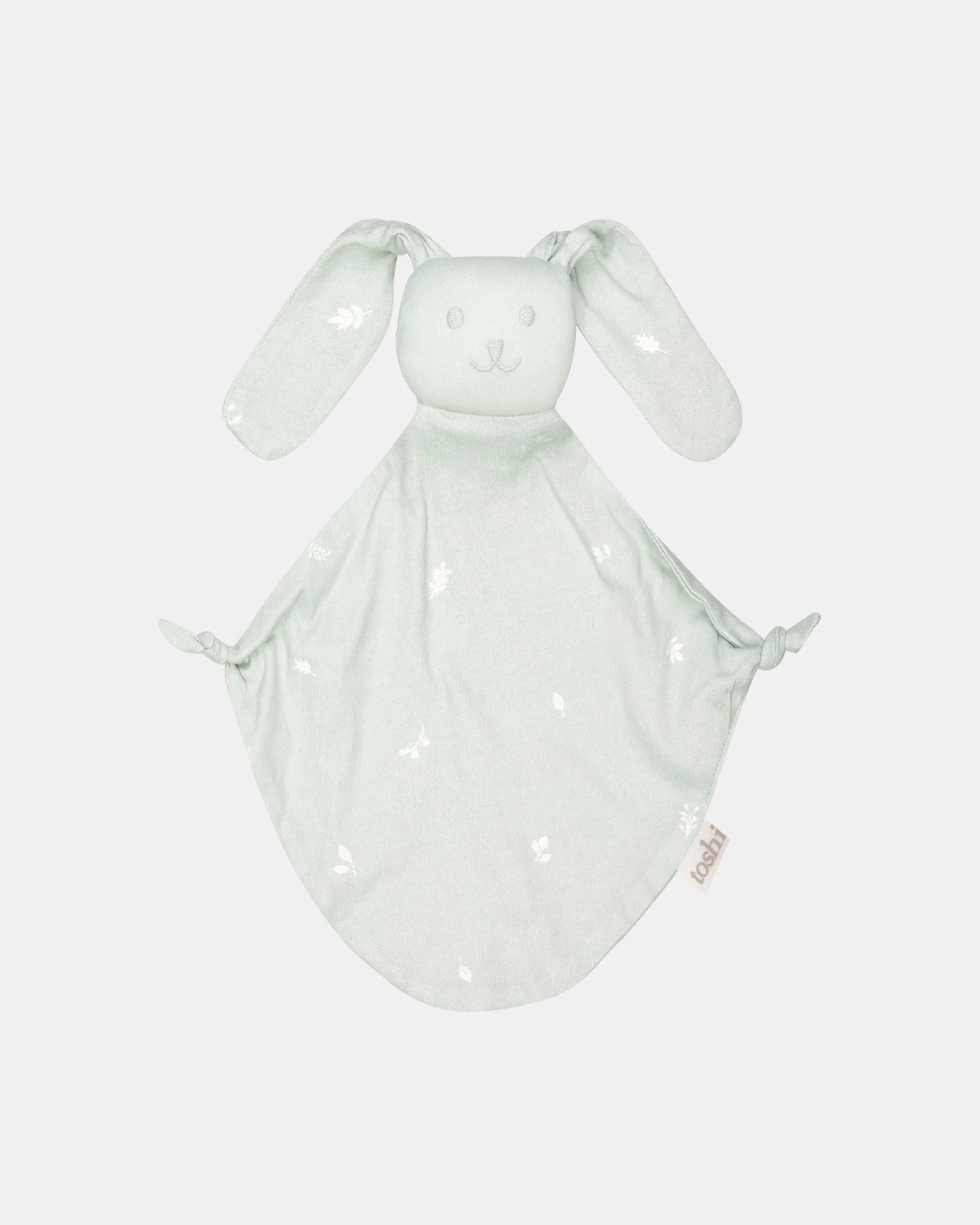 Toshi Bunny Mini is an ideal sleep comforter and daytime playmate. The lightweight feel makes bunny a suitable companion for indoor and outdoor adventures. Made from the finest quality 100% cotton, bunny is gentle and soothing to hold.